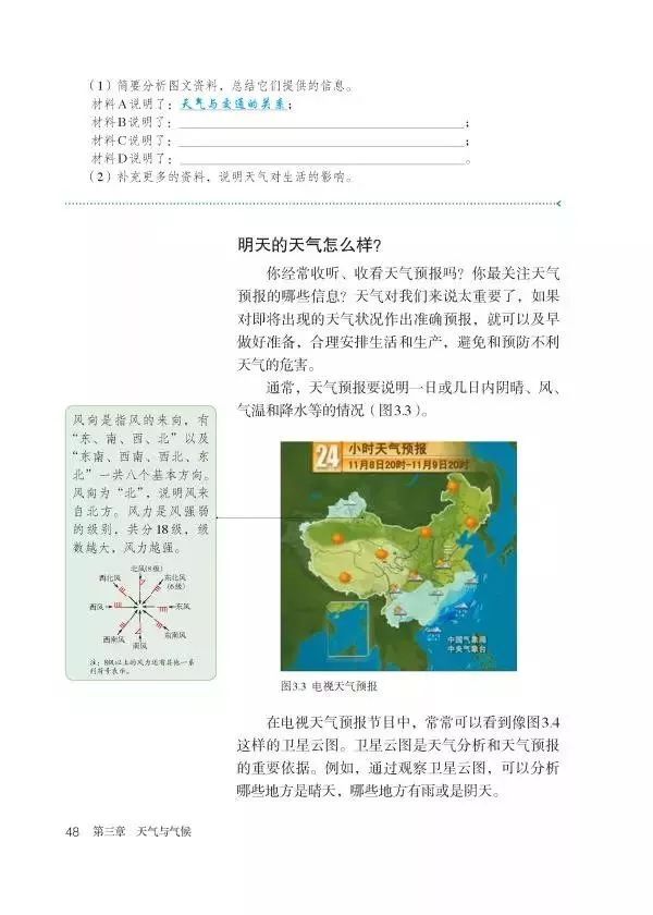 明天的天气怎么样 Page48 人教版七年级地理上册 12部编版 电子课本 教材 教科书 好多电子课本网